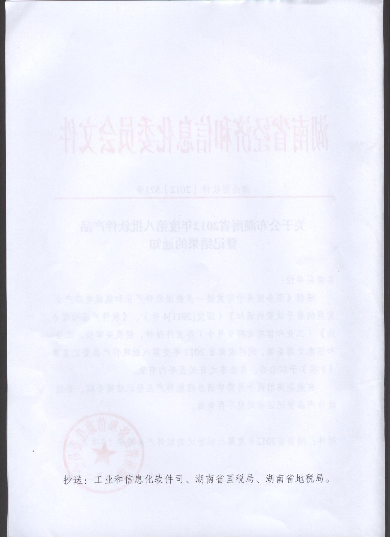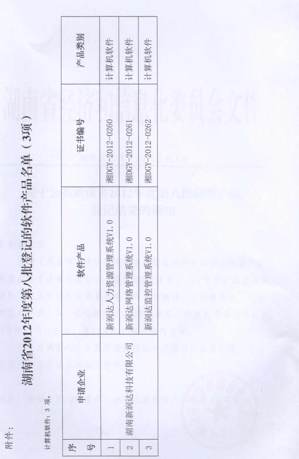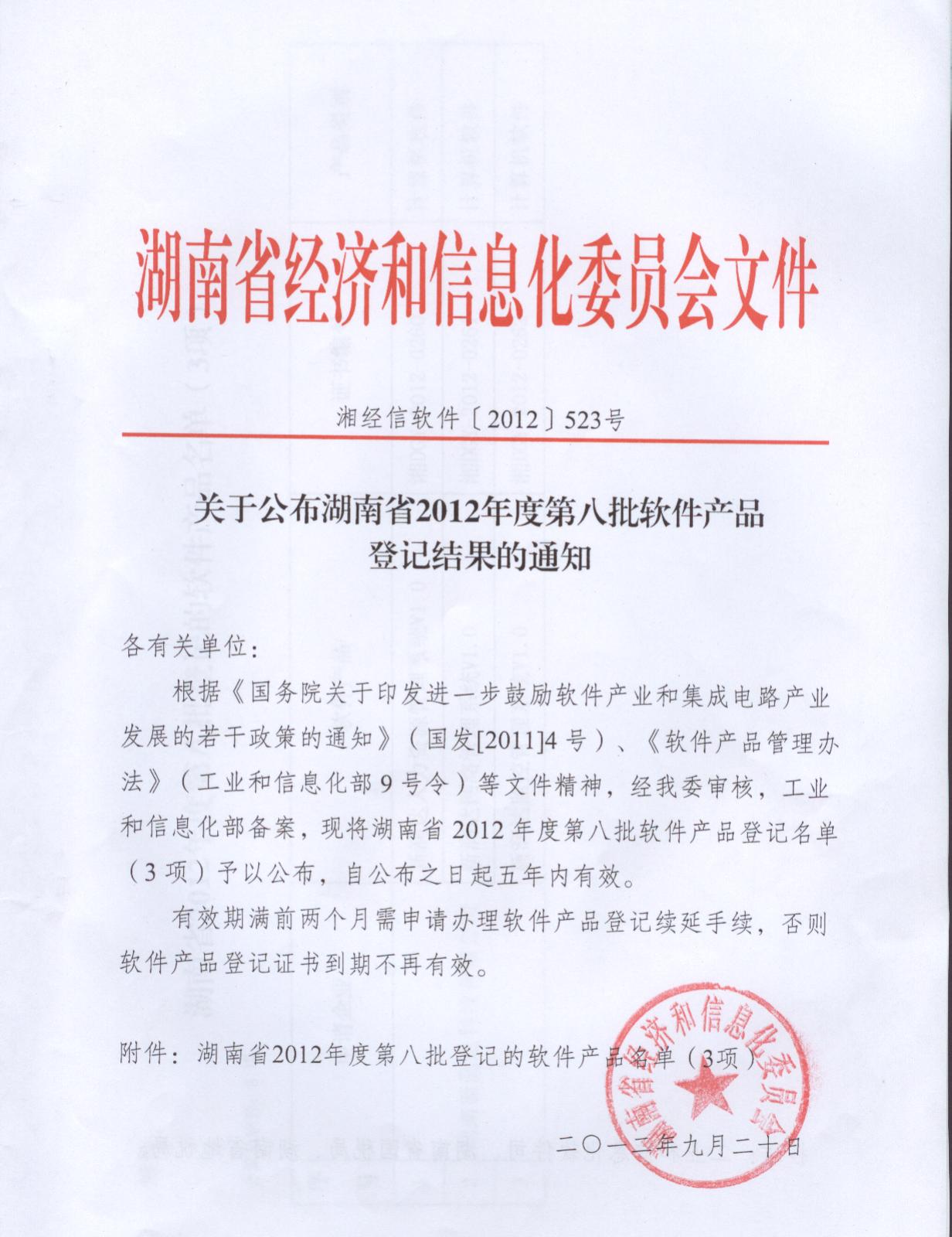 湖南省经济和信息化委员会关于公布湖南省2012年度第八批软件产品登记结果的通知