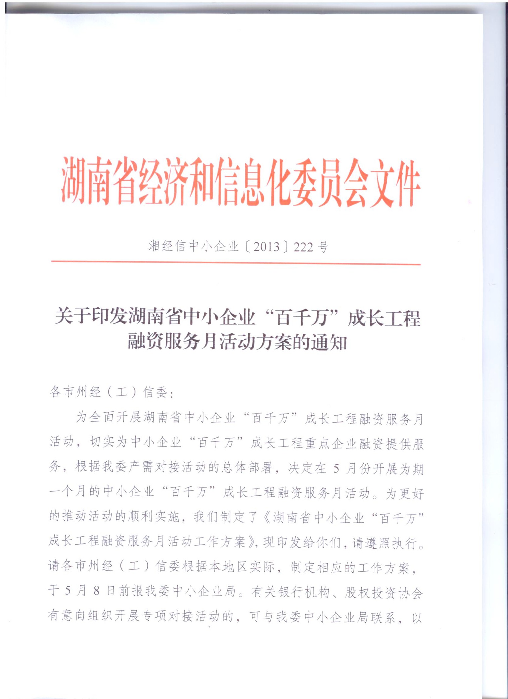 为全面开展湖南省中小企业“百千万”成长工程融资服务月活动,切实为中小企业“百千万”成长工程重点企业融资提供服务,根据我委产需对接活动的总体部署,特制定本方案。