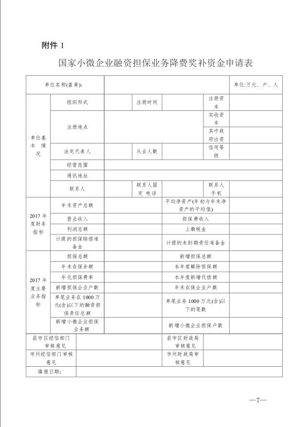 关于开展小微企业融资担保业务降费奖补资金申报的通知