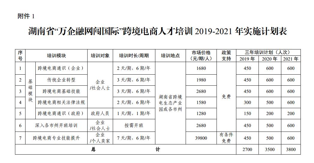 附件:1. 湖南省“万企融网闯国际”跨境电商人才培训2019-2021年实施计划表