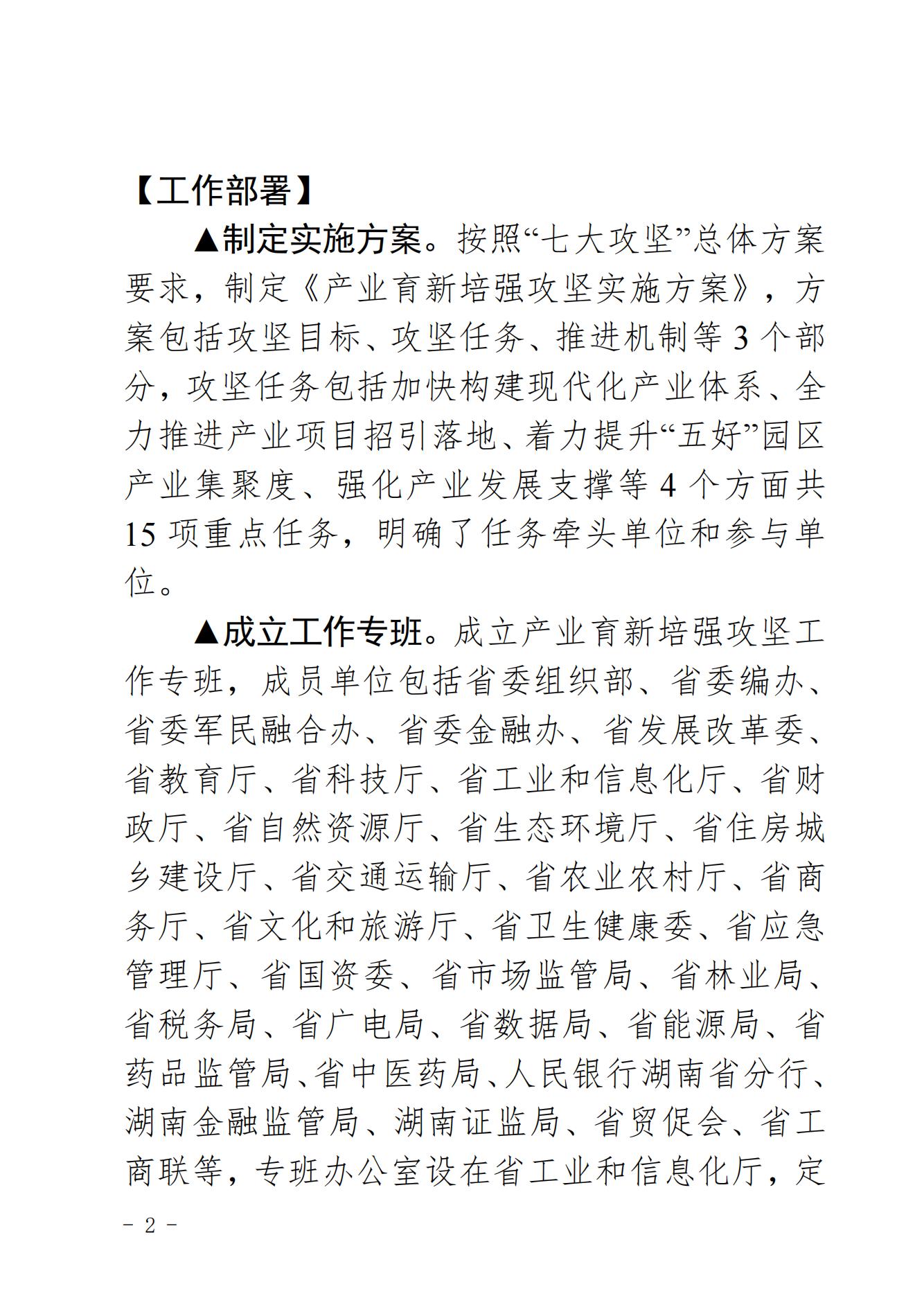 湖南省产业育新培强攻坚工作专报(第1期)