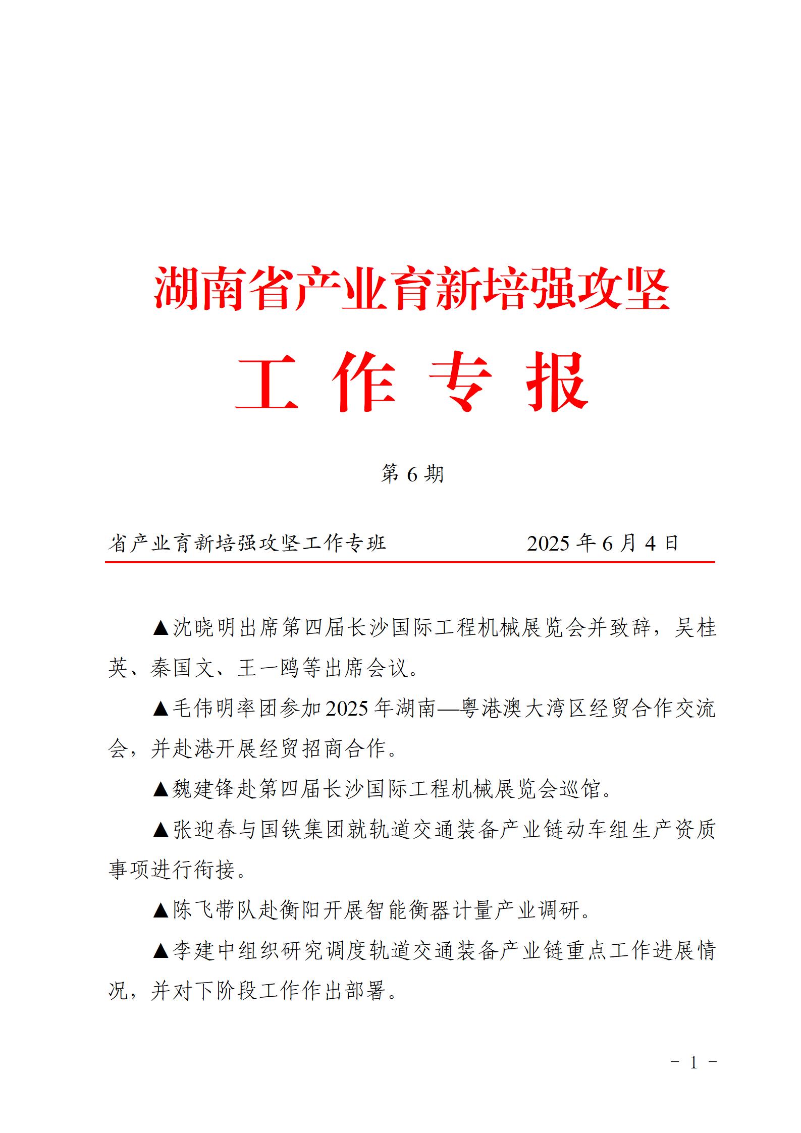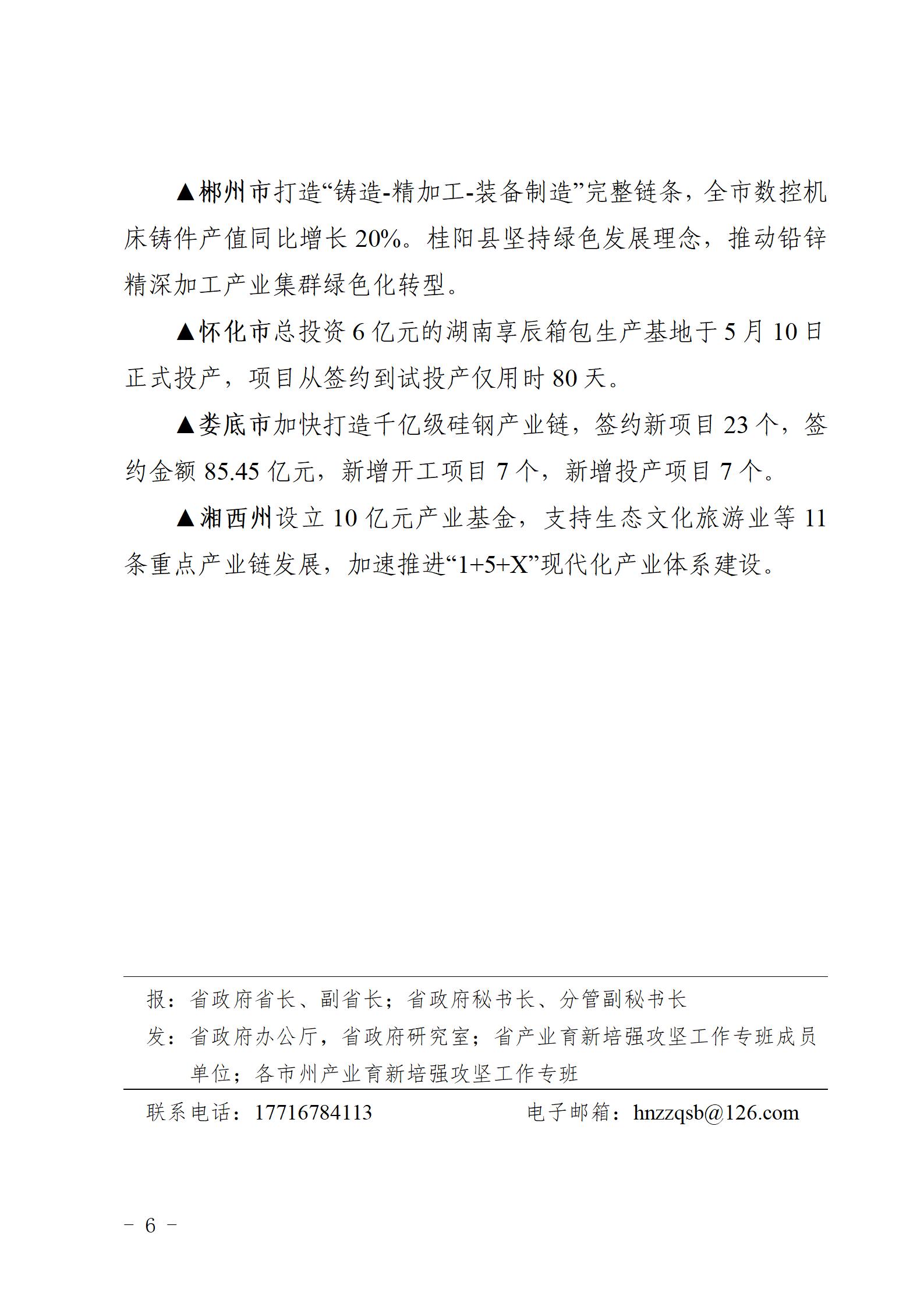 湖南省产业育新培强攻坚工作专报(第6期)