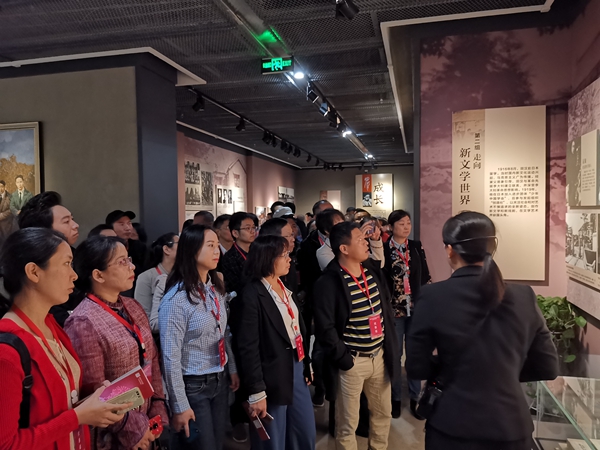 参加培训人员仔细聆听讲解员讲解田汉一生对党忠诚