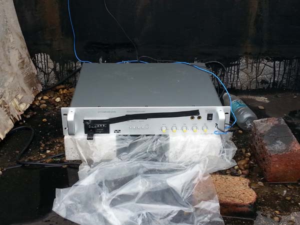 楼楼顶上发现了黑电台天线,并立即联系公安部门。在公安部门的协助下,查找人员在该楼顶电梯间上方找到了发射设备。该非法电台为智能调频广播发射机,与去年