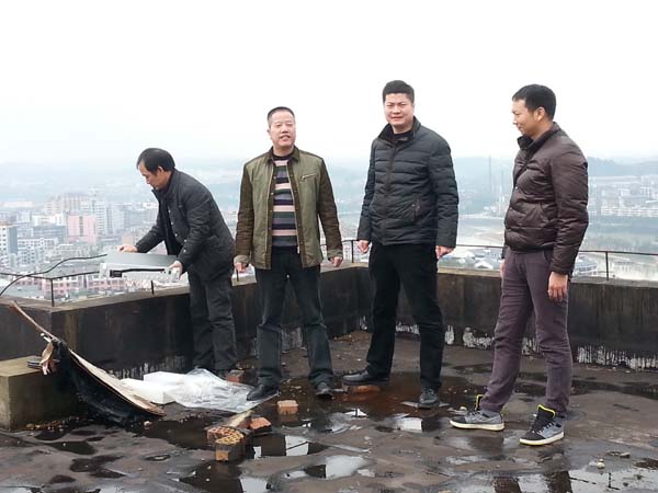 技术人员和公安人员在楼顶拆除黑电台