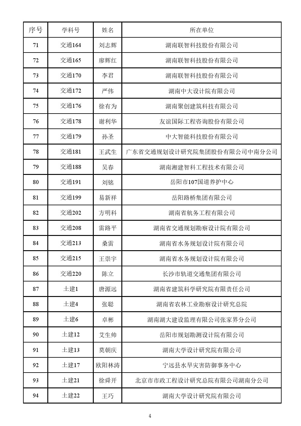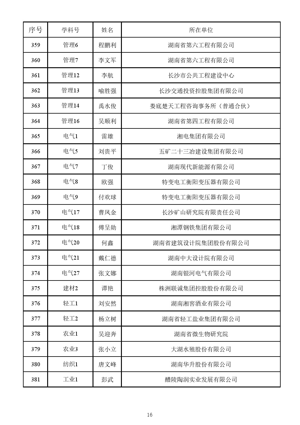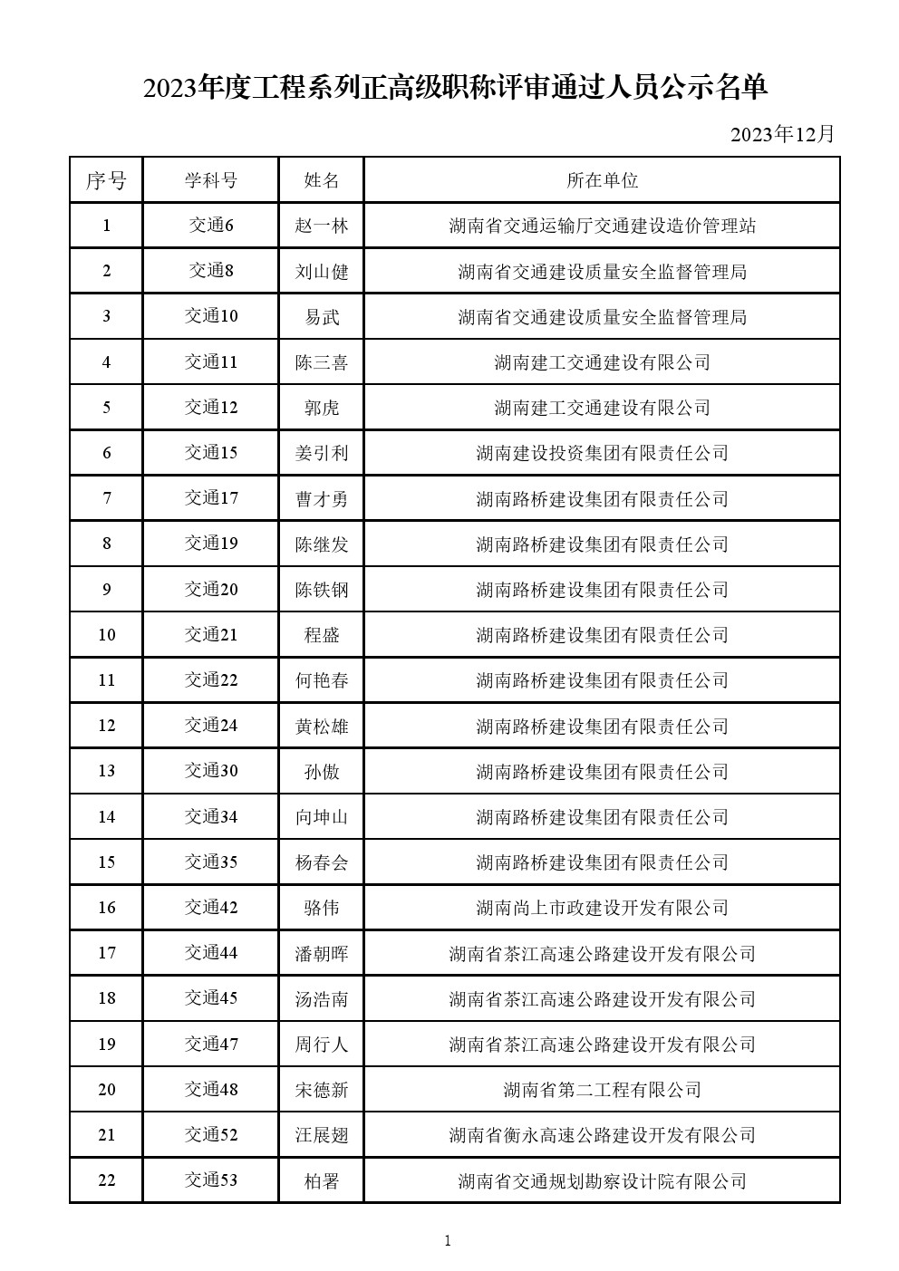 赵一林等381位同志(名单附后)工程系列正高级专业技术职称已于2023年12月23日经省工程系列正高级专业技术职称评审委员会评审通过,现进行公示。公示时间为5个工作日(2023年12月27日至2024年1月3日)。公示期间如对以上公示对象的职称评审有意见,可通过电话或书面形式实名向省职改办、省工程经济系列职改办反映。反映情况要坚持实事求是的原则,以便调查核实。(个别事业单位存在超职数申报或未及时申报职数的,请严格按照《湘职改办〔2020〕3号文》要求,将《年度事业单位系列(专业)高级职称评审职数申报专业备案表》(附件5)于公示结束前报我办,我办将予以核实并重新按职数确定通过人员。)