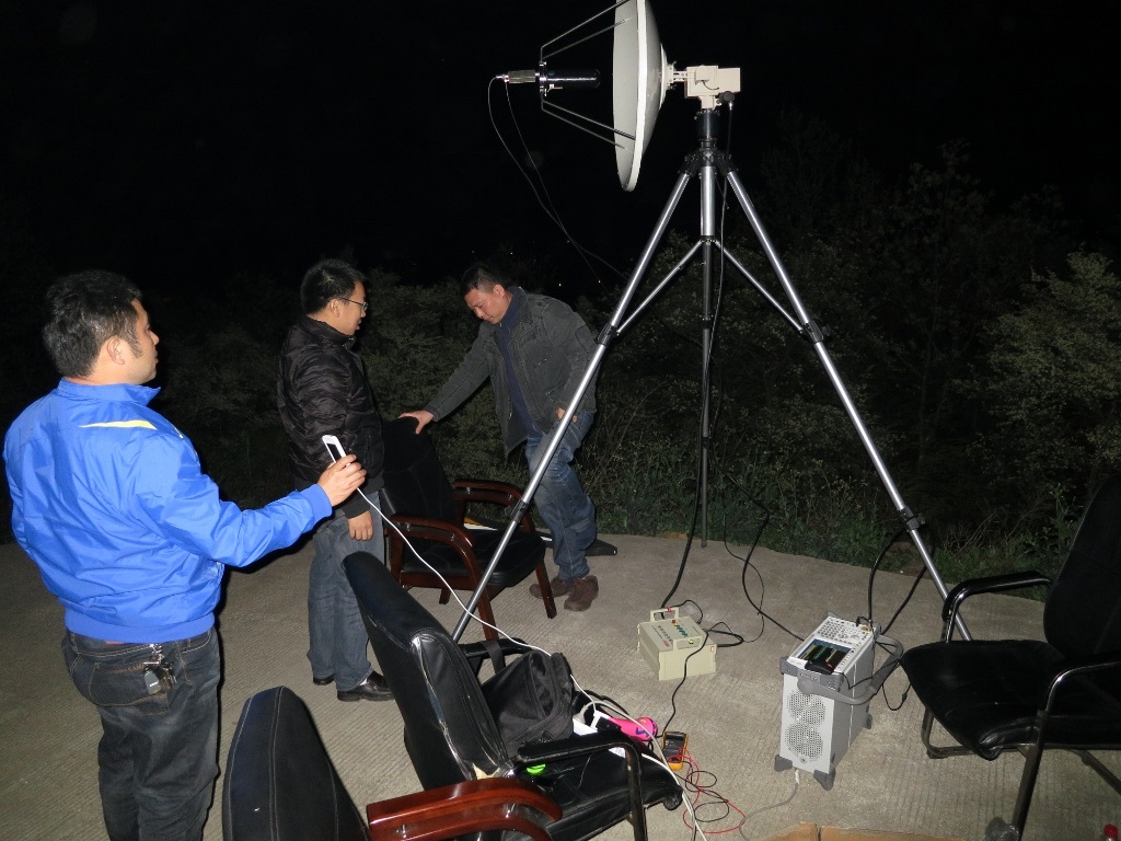 28日晚,技术人员正准备调整接收天线进行另一个方位角的电磁环境测试
