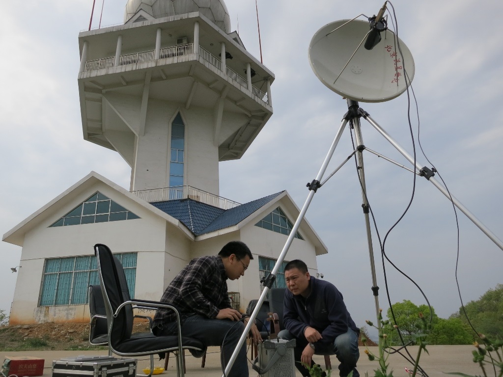 2013年3月28日,技术人员在岳阳风雨山风廓线雷达候选站址进行电磁环境测试