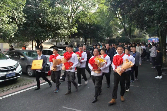 捷报传来,全校师生欢欣鼓舞。学校党委书记唐放文、校长肖孝伟同学校领导班子全体成员率师生在学校大门口欢迎获奖选手载誉归来,为获奖选手披挂大红花,敬献鲜花,举行了隆重的欢迎仪式,并召开座谈话进行庆祝。会上,领队、教练、选手向学校汇报了积极参赛、认真备赛、刻苦训练的动人事迹,畅谈奋勇拼搏、力挫群雄的竞赛感言,表达了胜不骄、败不馁,向更高目标奋进、为学校增光的坚强决心,与会师生深受感动。学校领导对所取得的成绩进行了充分肯定,提出了挑战省赛、国赛、世赛并奋勇争先的殷切期望。