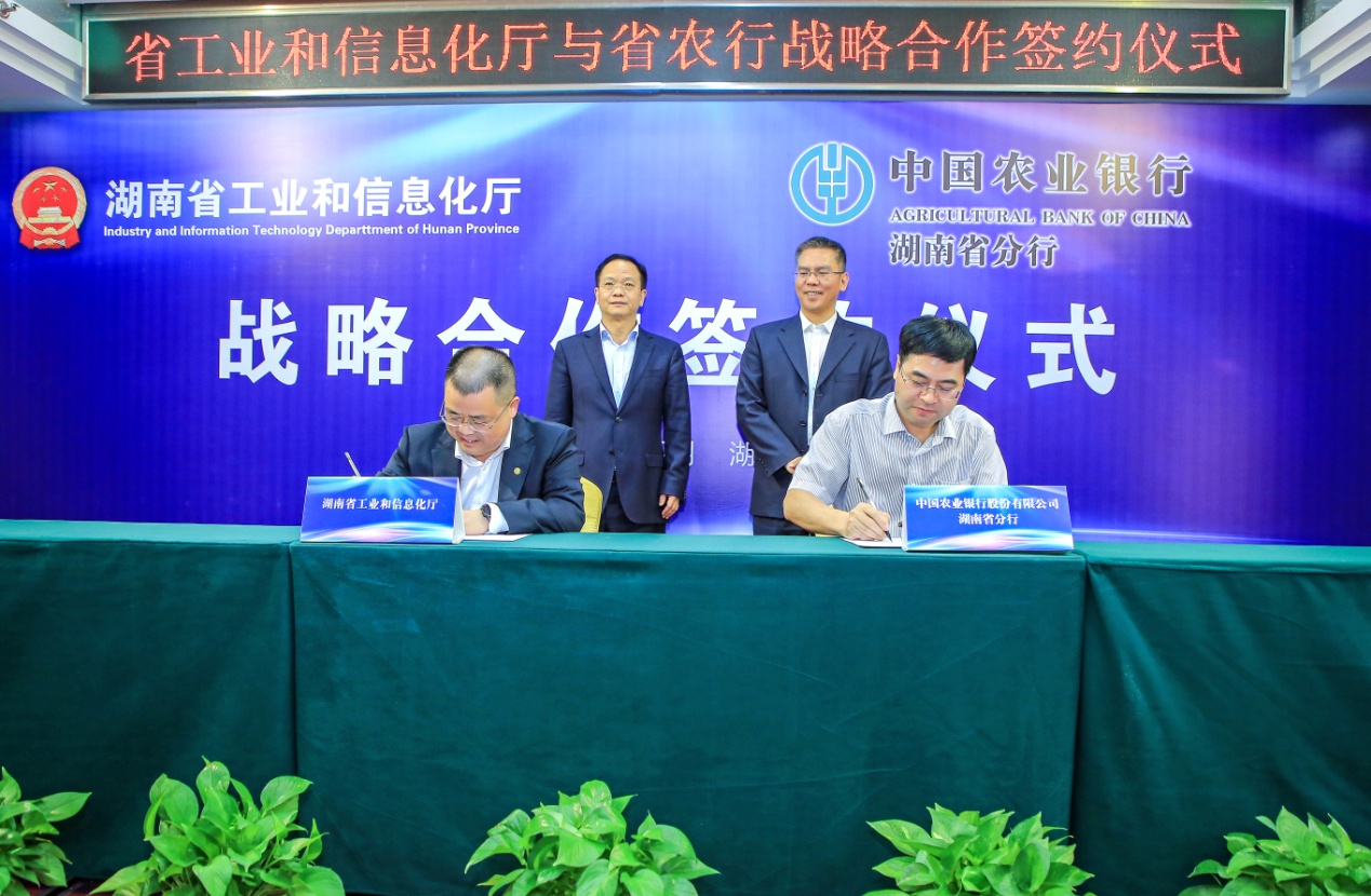 为认真贯彻落实党中央、国务院“六稳”、“六保”决策部署,进一步推动湖南制造业高质量发展,促进中小企业健康发展,4月30日,湖南省工业和信息化厅与中国农业银行湖南省分行签署战略合作协议。省工信厅党组书记、厅长曹慧泉,党组成员、总经济师熊琛,省农行党委书记、行长陶伟梁,党委委员、副行长陈干清,党委委员、副行长谭敦宇等出席。