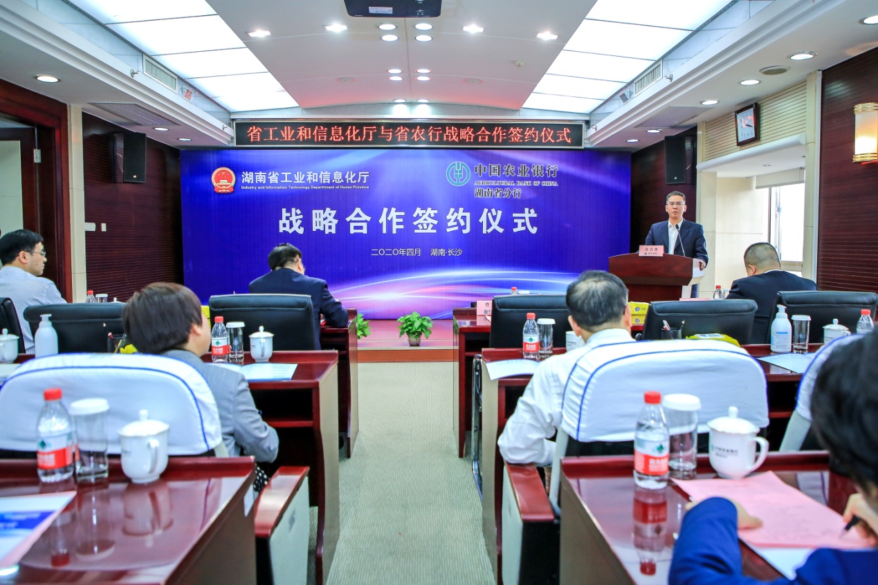 曹慧泉厅长在致辞中强调,伴随着湖南经济在中部地区所占份额和湖南制造业竞争力的提升,必将进一步提升在国家制造业的战略定位。省工信厅与省农行签订战略合作协议将是深化政银合作的新起点。一是坚持做强大企业,培育小巨人。要加快培育1-2家世界五百强企业,力争在现有具备较好潜质的企业中继续培育一批千亿企业、五百亿级和百亿级企业。要始终坚持“专精特新”发展方向,在制造业硬科技攻关方面下大功夫,努力培育一大批优秀的中小企业。二是更好地推进政银企合作。推进整合政府部门、企业等多方数据信息,通过融资服务平台为银企双方提供更多高质量的信息,运用互联网和大数据手段,营造高效透明、富有价值的平台。三是顺应复工复产的工作要求。当前,湖南工业企业整体上呈现出复工早、复工快、复工水平高的良好局面。省农行将重点支持“五个100”项目建设,支持小微企业发展,促进“白名单”企业和专精特新“小巨人”企业快速发展。省工信厅将进一步做好协调服务,推动合作协议落实落地。