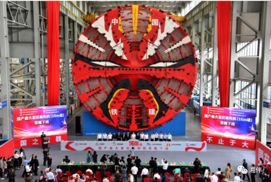 一台最大开挖直径达16.07米的超大直径盾构机在中国铁建重工集团长沙第一产业园下线。华声在线记者 郭立亮 摄
