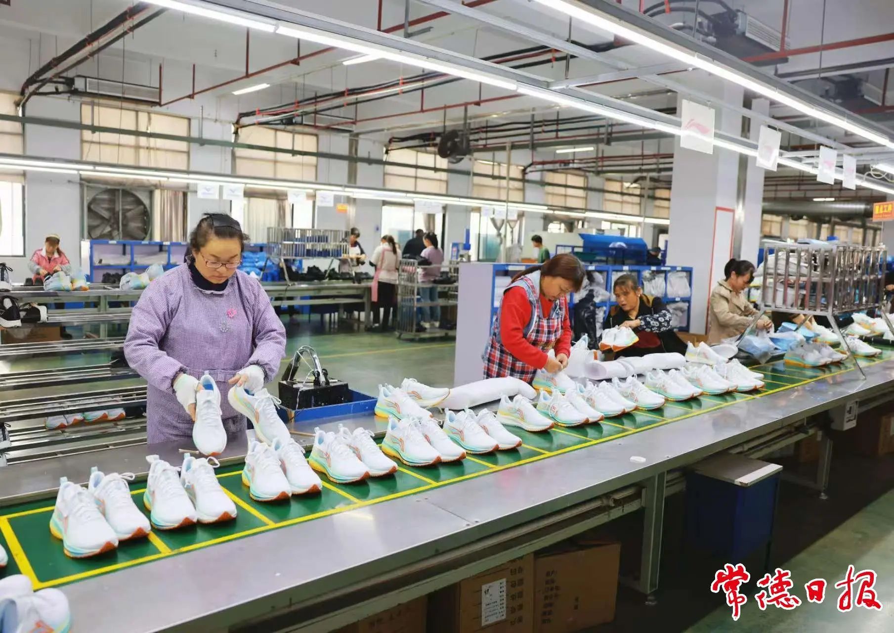 49岁的陈家绢是生产部针车车间主管,2019年,在珠海打工多年的她因为要照顾老人回到常德老家,应聘到嘉泰鞋业工作。“每个月能挣1万元左右。”说起自己既能在家门口挣钱,又能照顾到家人,陈家娟连声说,“特别满意,十分感恩。”40岁的李俊霞是桃源县人,为了照顾孩子,她2021年从浙江回乡打起零工,“以前打工只有2000多元的工资,有些工作还要上晚班,现在每个月能挣五六千元。”
