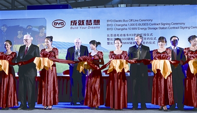巴菲特/盖茨在长沙见证比亚迪纯电动客车K9下线