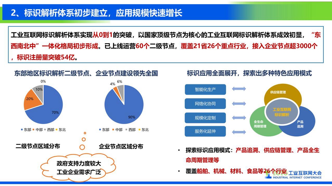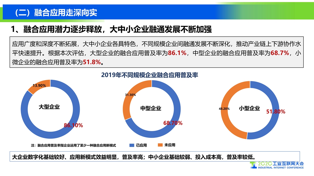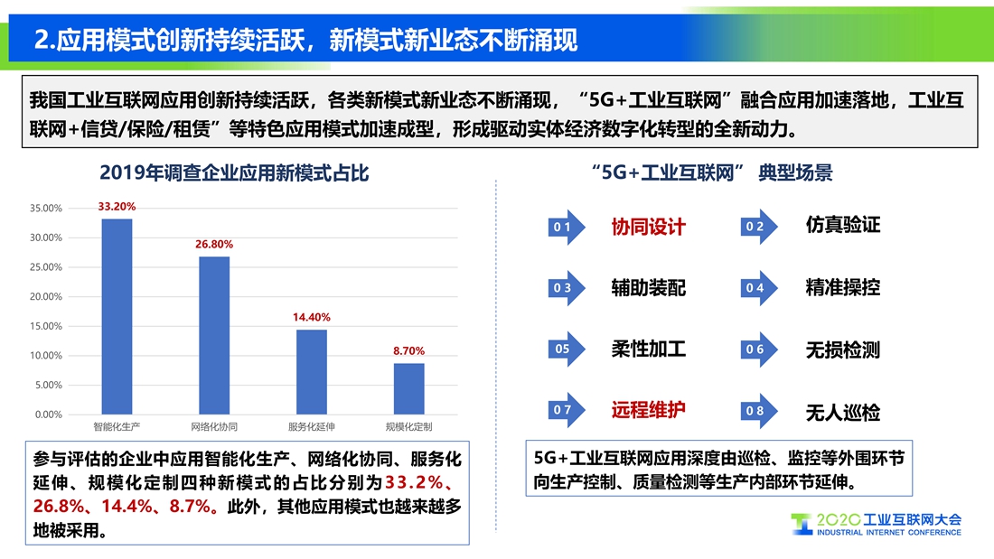 《报告》指出,我国工业互联网基础设施建设与融合应用协同并进、成效显著。随着工业互联网网络、平台、标识等新型基础设施建设日益完善,融合应用创新的广度和深度不断拓展,应用潜能得到充分释放,各类新模式新业态不断涌现,推动大企业带动中小企业发展,中小企业为大企业注入活力的融通发展新格局加快形成。