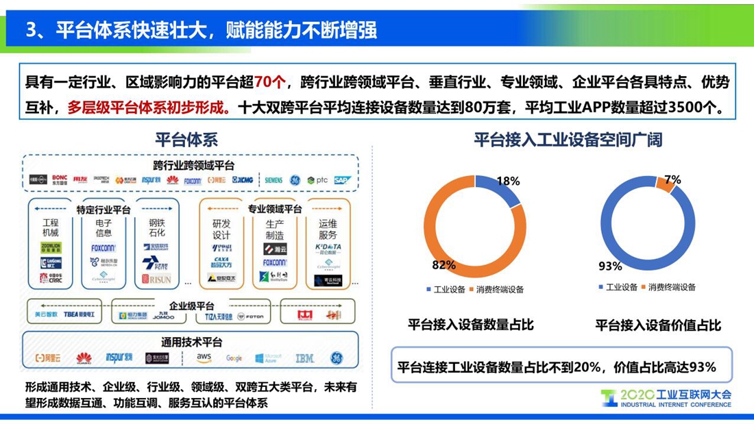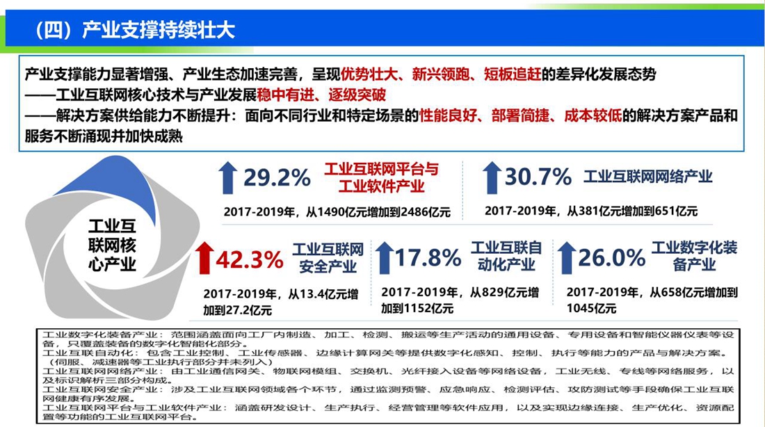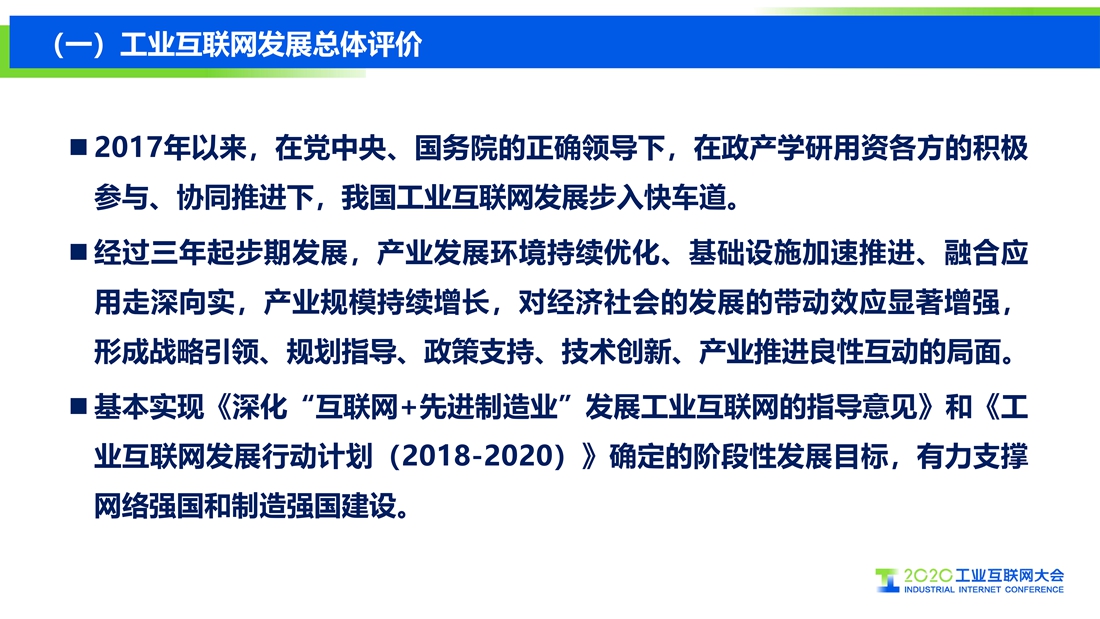 《报告》认为,经过三年起步期建设,我国工业互联网产业发展环境持续优化、基础设施建设加速推进、融合应用走深向实,产业规模持续增长,对经济社会的发展的带动效应显著增强,形成了战略引领、规划指导、政策支持、技术创新、产业推进良性互动的局面,《国务院关于深化“互联网+先进制造业”发展工业互联网的指导意见》和《工业互联网发展行动计划(2018-2020年)》确定阶段性发展目标已基本实现。
