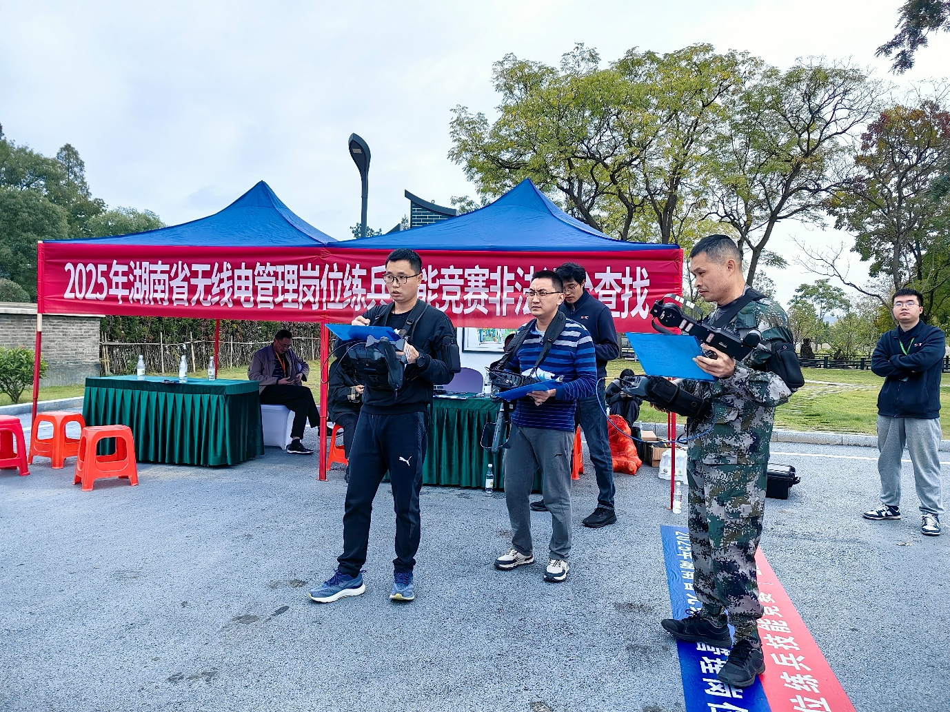 竞赛聚焦实战需求,设置四大考核科目,全面覆盖行业核心业务场景。在理论知识考核中,选手们展现出扎实的专业基础与无线电监测理论功底;徒步查找非法设台环节要求参赛者在25分钟内,利用便携设备在复杂电磁环境中精准定位多个隐蔽信号源,充分考验其设备操作与信号分析能力;无线电信号分析科目则重点考查对不明信号的参数测量与违法违规信号识别能力;此外,考试无线电保障科目模拟真实场景,检验团队的监测控守与应急处突水平。最终,娄底、湘西、长沙分获团体前三名。本次竞赛首次实现全员覆盖,全省新入职技术人员及预备役人员同步参与考核,充分体现“以赛促学、以赛促练”的育人理念。