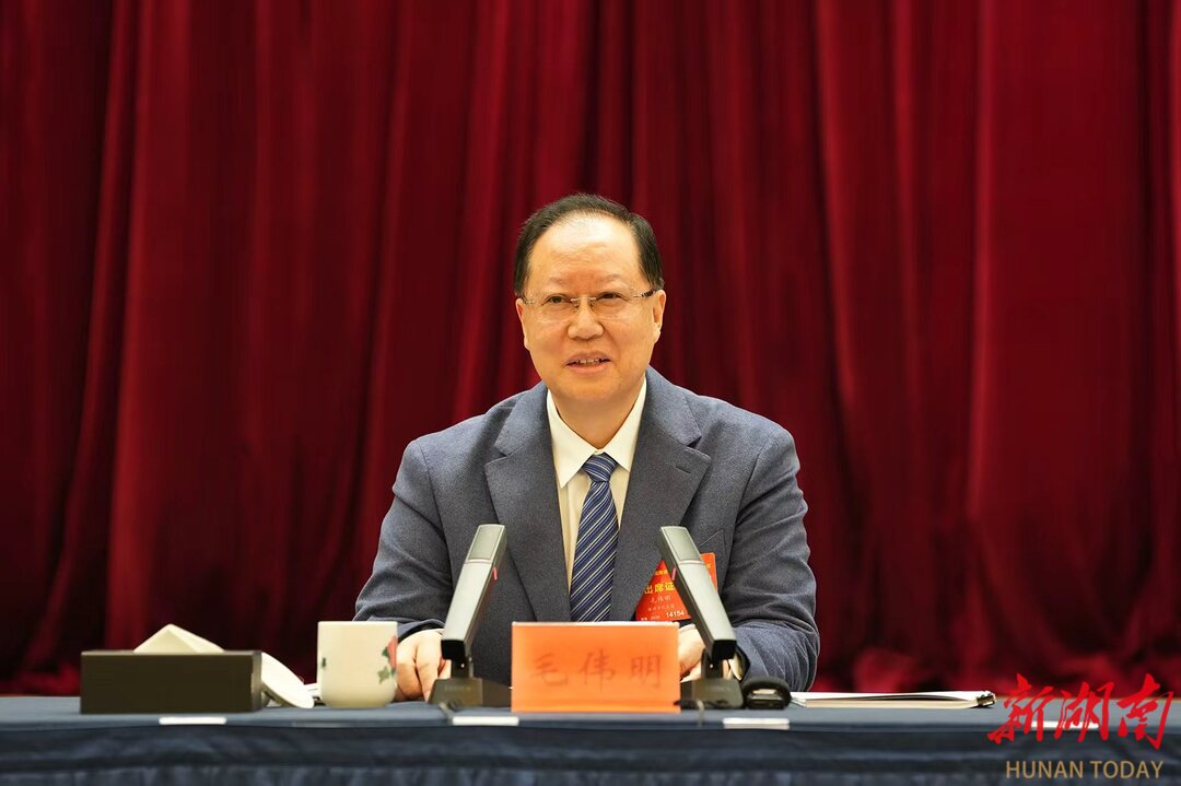 2月4日上午,省委副书记、省长毛伟明参加省政协十三届四次会议民进、文艺、社科、新闻出版、社会福利与社会保障、农业等界别第二联组讨论。他寄语大家要深入贯彻习近平总书记关于湖南工作的重要讲话和指示批示精神,凝心聚力、锐意进取,为“十五五”开好局、起好步作出新贡献。